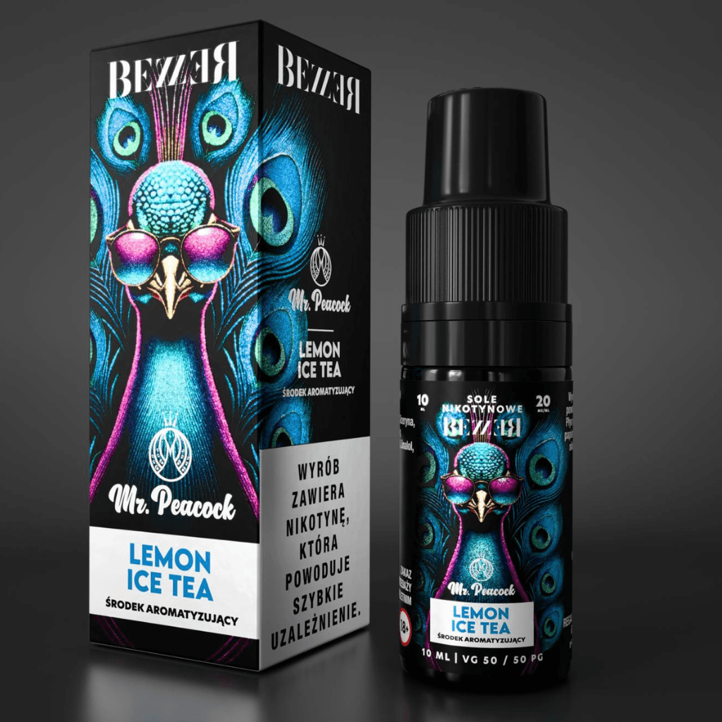 Liquid Bezzer Mr. Peacock 10ml 20mg Salt Lemon Ice Tea. Gotowy płyn do e-papierosów na bazie soli nikotynowych o smaku Lemon Ice Tea.
