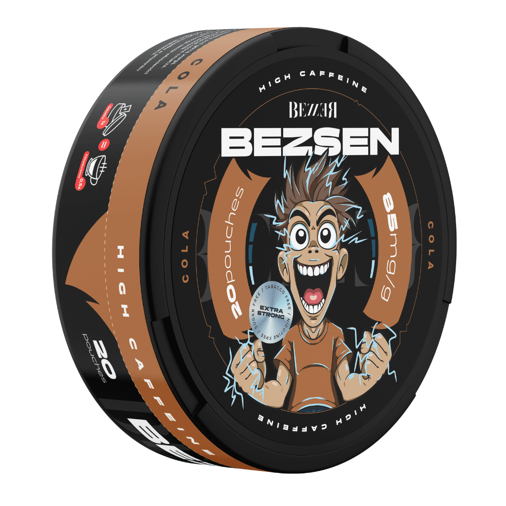 SNUS z kofeiną BEZZER BEZSEN Cola – 170 mg kofeiny, klasyczny smak coli i zero cukru. Podwójna dawka energii dla maksymalnego pobudzenia!