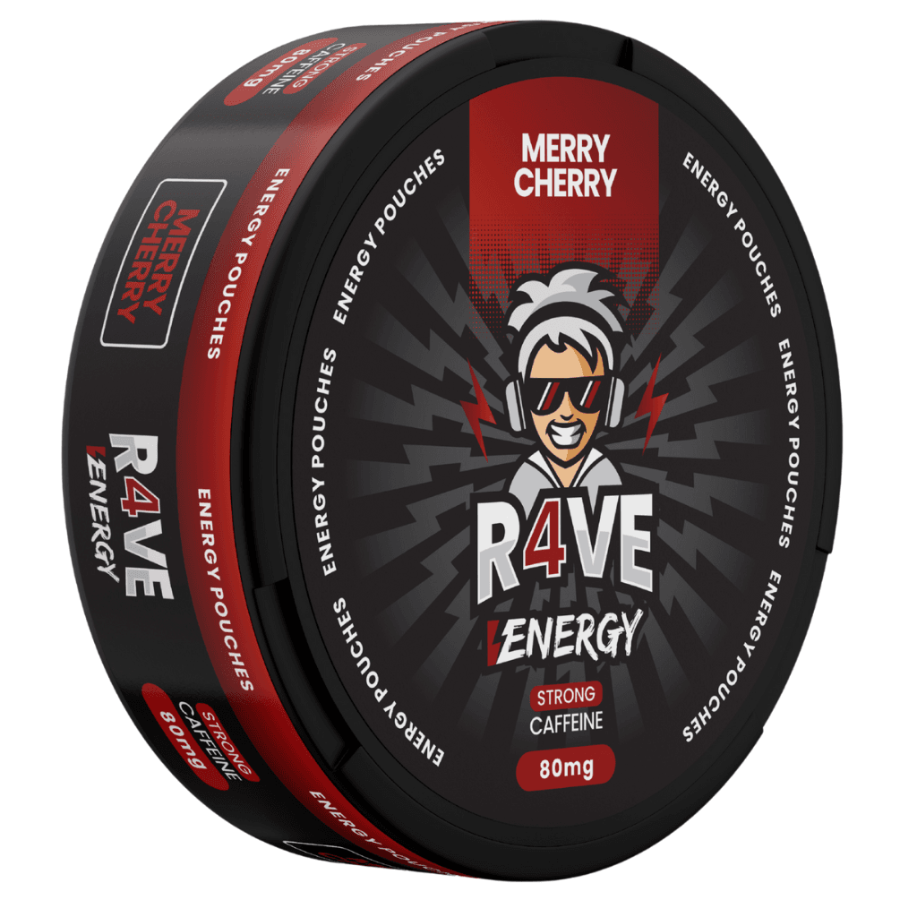 SNUS z kofeiną R4VE Energy Merry Cherry – 80 mg kofeiny, intensywny smak soczystej wiśni i zero cukru. Czysta energia na każdą okazję!