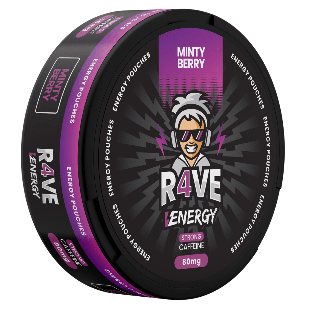 SNUS z kofeiną R4VE Energy Minty Berry – 80 mg kofeiny, wyjątkowe połączenie mięty i owoców leśnych, zero cukru. Orzeźwienie i energia w każdym woreczku!